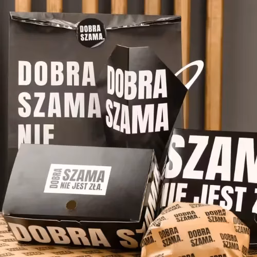 A teraz wyobraź sobie moment dostawy. Klient otwiera torbę, widzi stylowe pudełko z nadrukiem „Dobra Szama Nie Jest Zła” i… już wie, że czeka go coś wyjątkowego! To więcej niż zwykłe opakowanie – to część doświadczenia, które sprawia, że Twoja marka zostaje w głowie na dłużej.