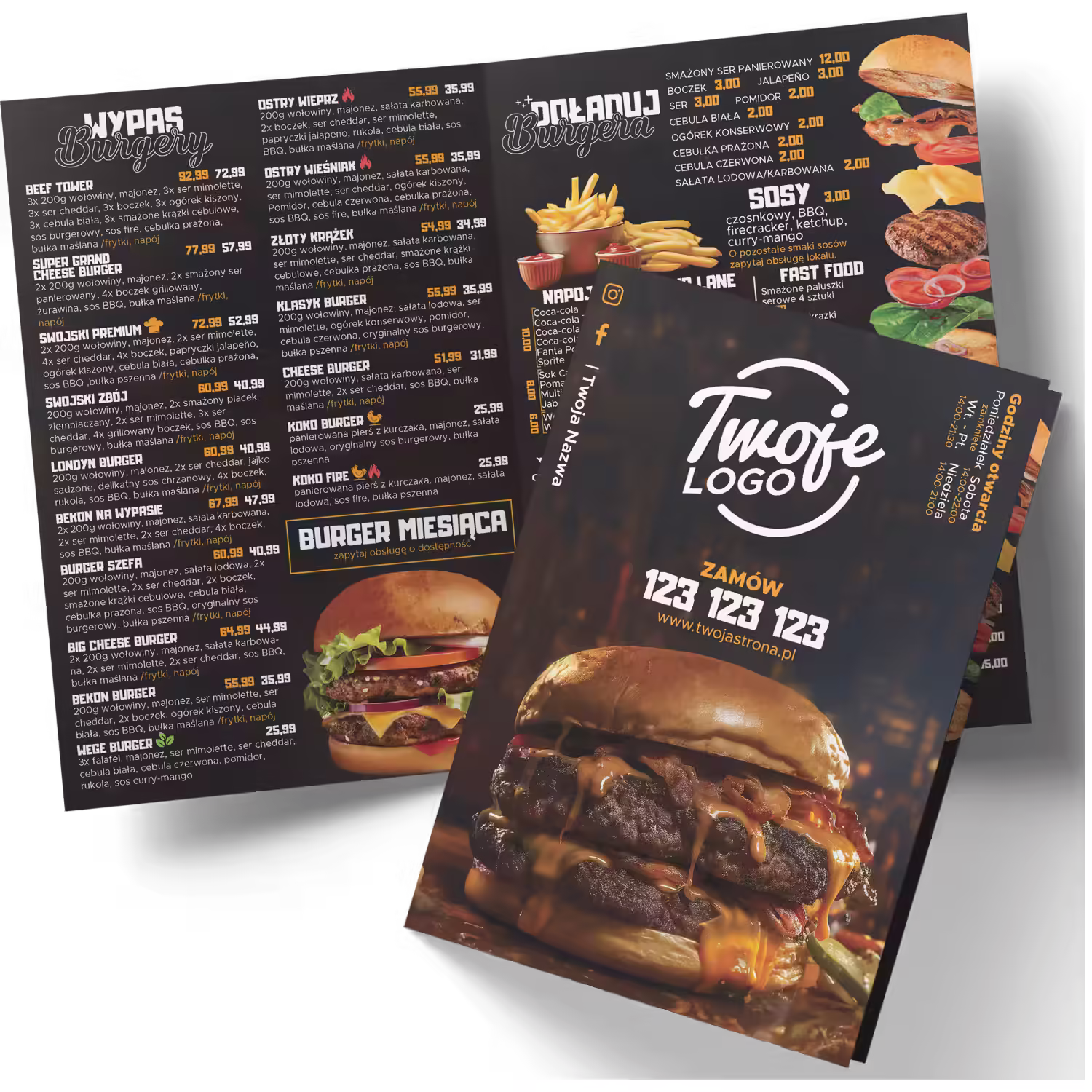 • Uniwersalne zastosowanie – ulotki sprawdzą się jako menu w gastronomii, oferta produktowa, cennik, katalog, zaproszenie czy promocja usług.